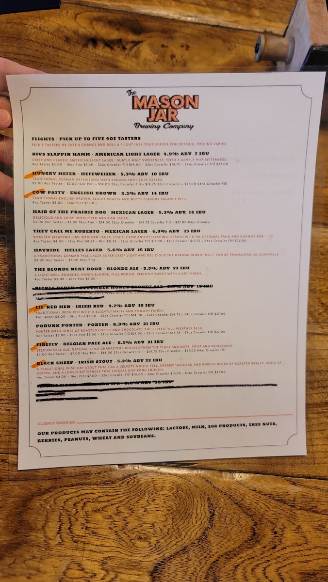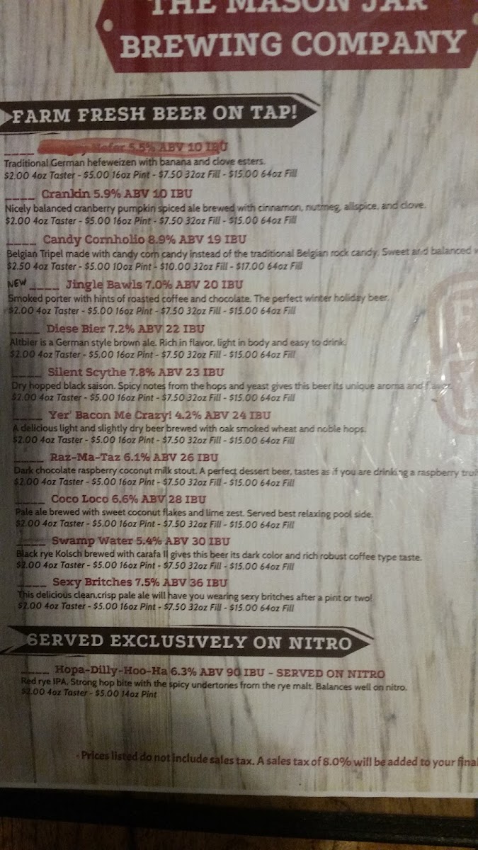 The Mason Jar Brewing Company Menu